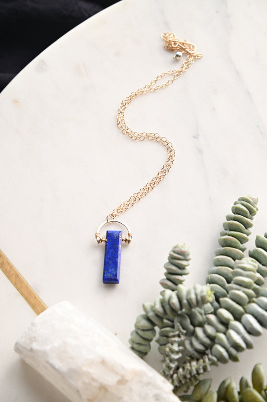 Hammered Hoops: Lapis Lazuli + Gold Necklace