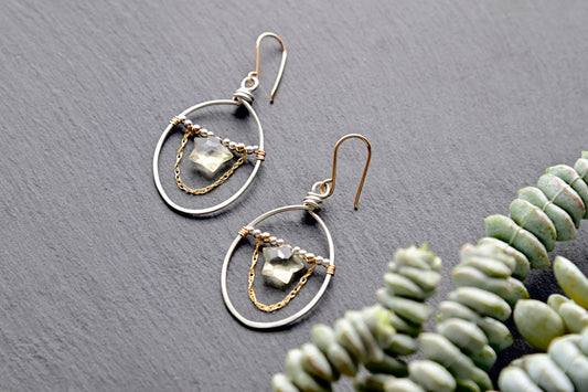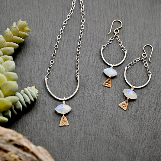 Hammered Hoops: Moonstone + Mixed Metals Necklace + Earrings