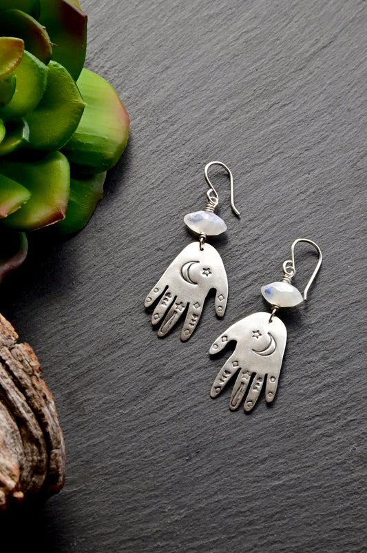 Hammered Hoops: Pink Moonstone + Silver Necklace & Earrings