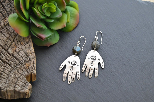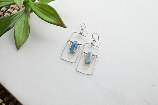 Hammered Hoops: Blue Kyanite + Silver Earrings