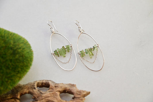 Hammered Hoops: Green Tourmaline + Silver Earrings