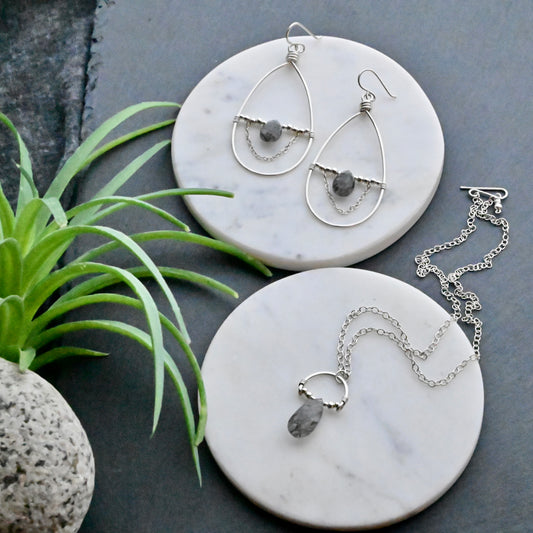 Hammered Hoops: Tourmaline Quartz + Silver Necklace + Earrings
