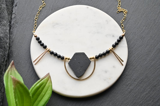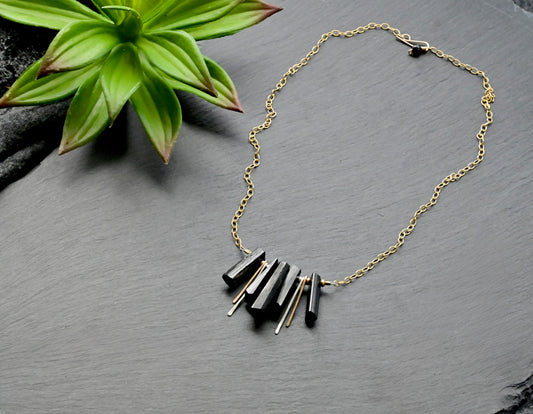 Sticks & Stones: Black Tourmaline + Gold + Silver Necklace