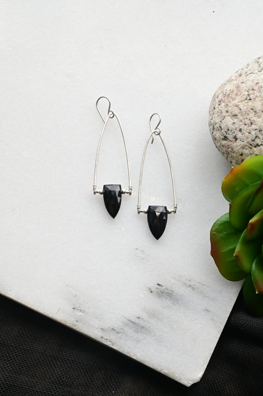 Hammered Hoops: Black Onyx + Silver Earrings