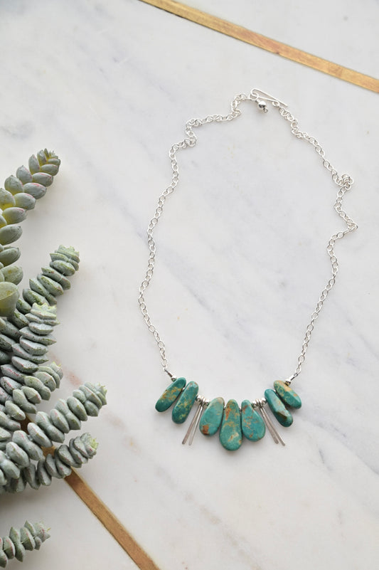 Hammered Hoops: Turquoise + Mixed Metals Necklace and Earrings