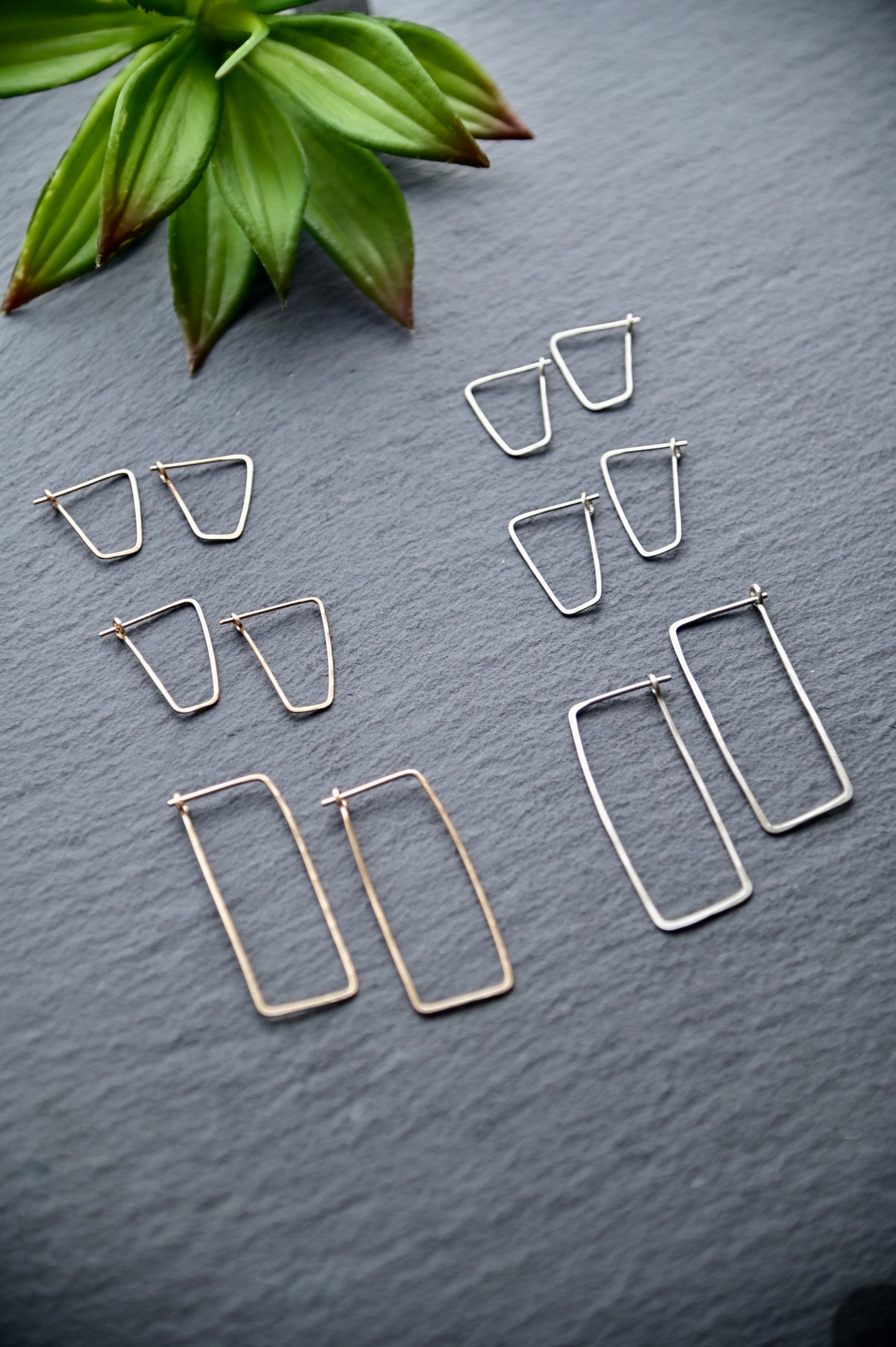 Handcrafted from 14k Gold-fill or Sterling Silver, these stylish Square Infinity hoops are delicate and lightweight, while also making a statement. Great for getting dressed up or for casual wear.