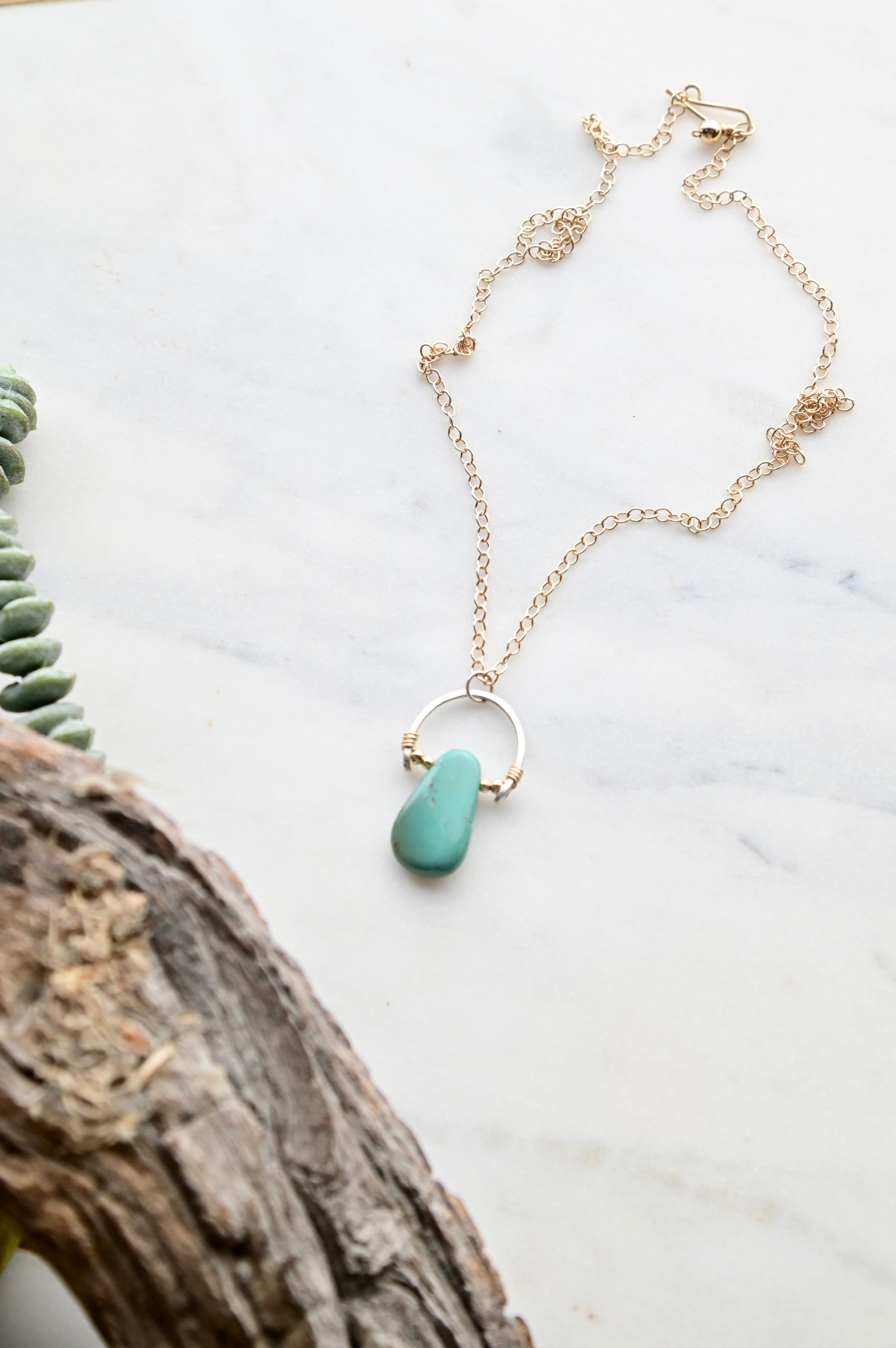 Hammered Hoops: Turquoise + Mixed Metals Necklace and Earrings