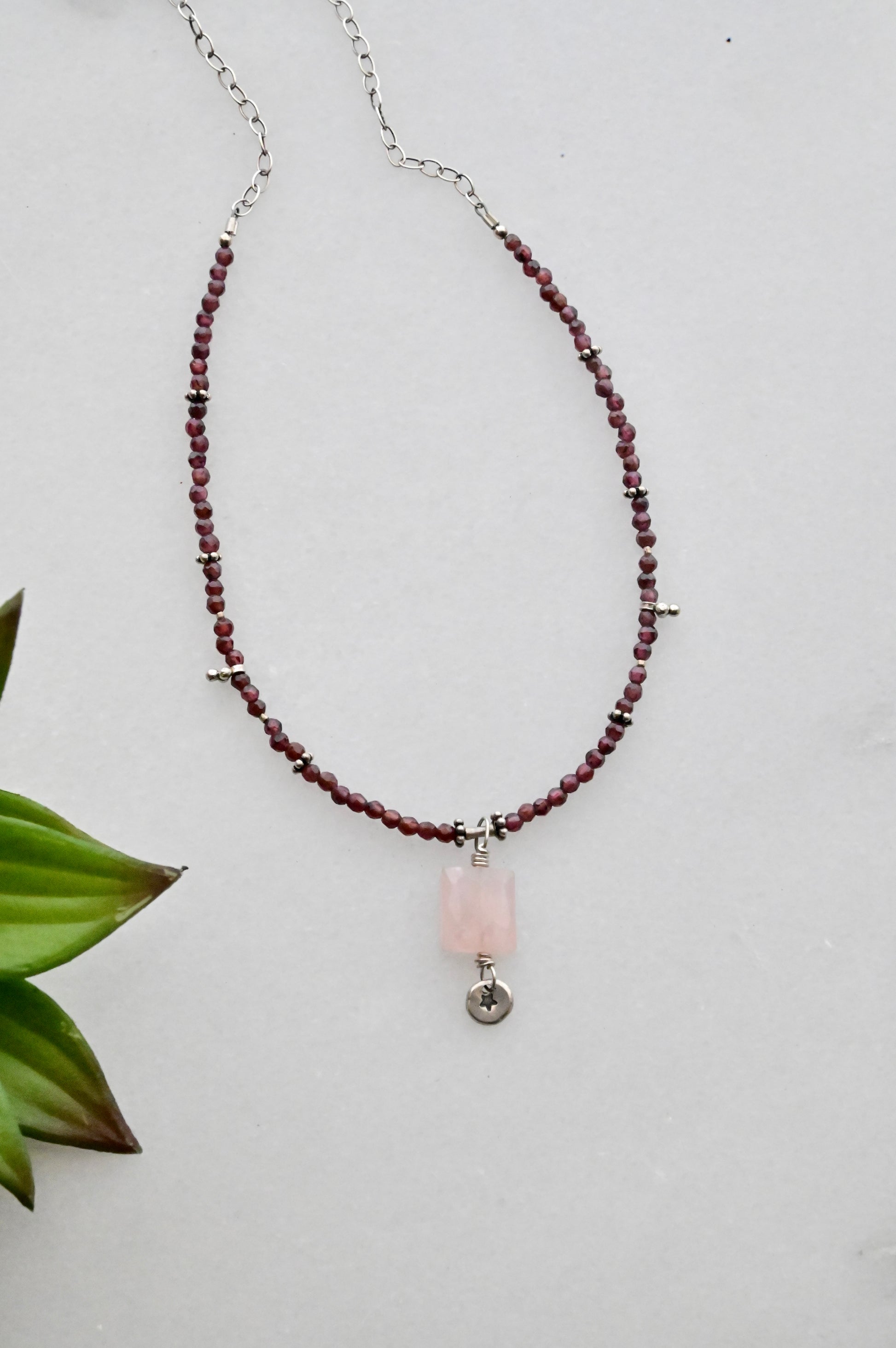 - Star pendant with Rose Quartz, Garnet accents ($124)