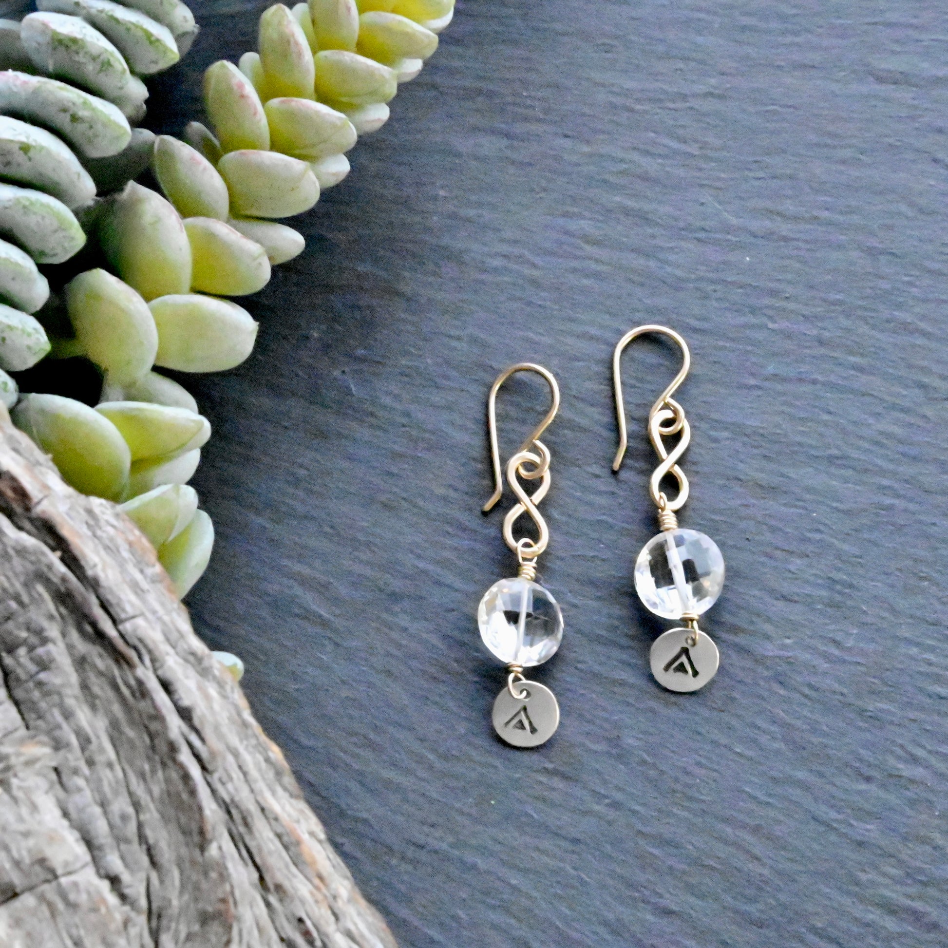 Handcrafted and individually stamped Sterling Silver drops and 14k Gold-fill accents links paired with brilliantly faceted Quartz Crystal gemstones.