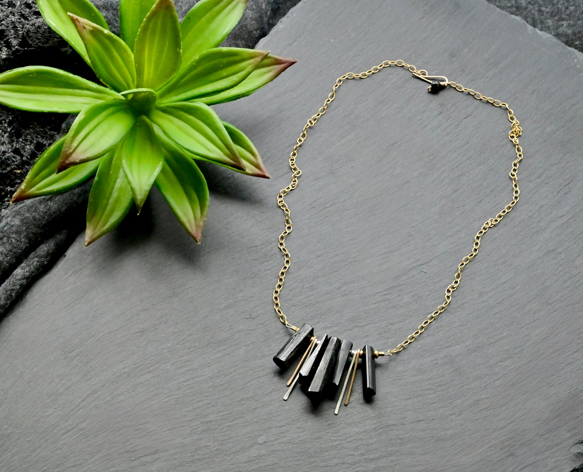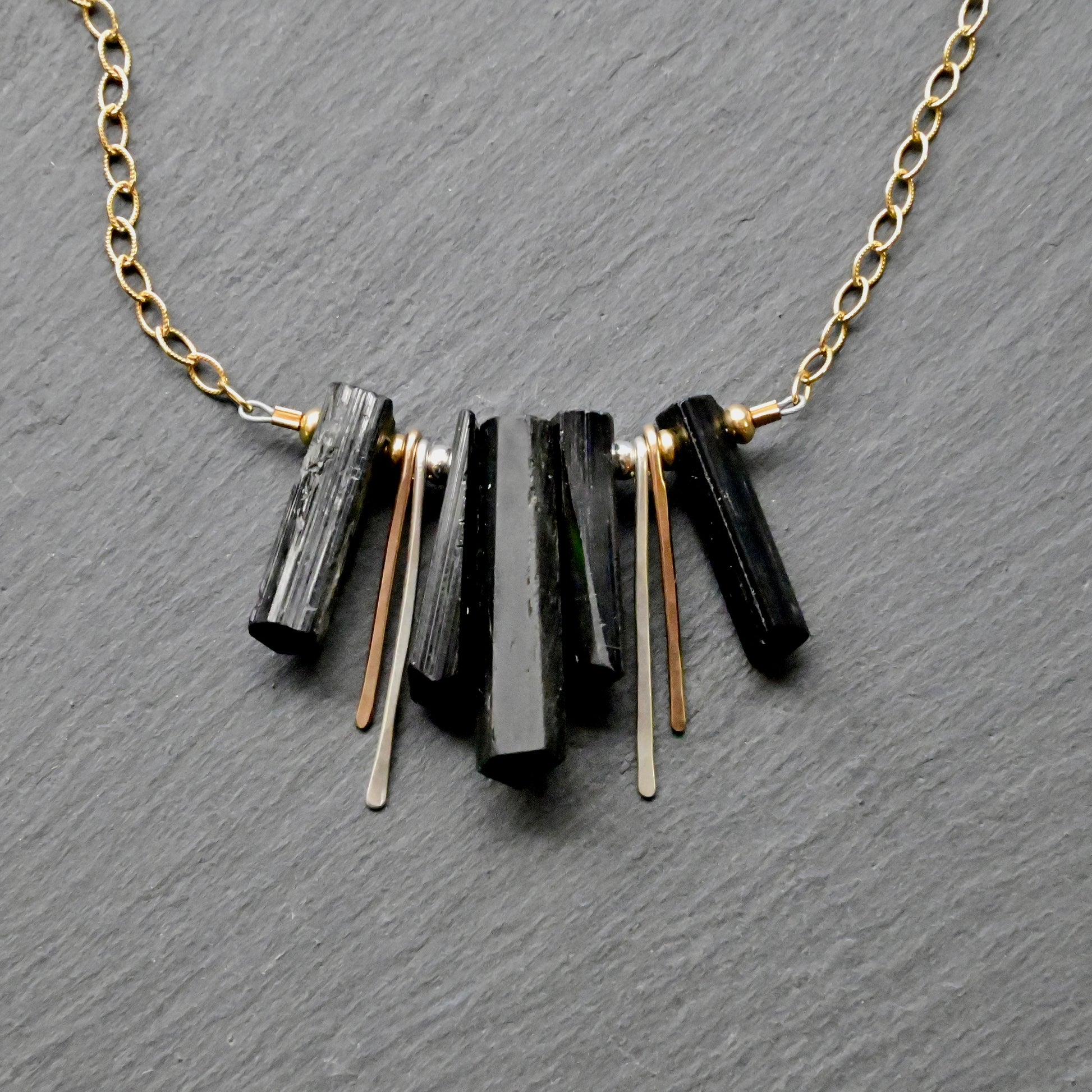 Sticks & Stones Necklace in Black Tourmaline with 14k Gold-fill and Sterling Silver