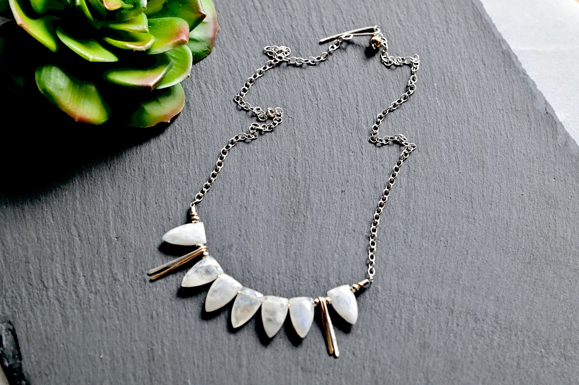 Sticks & Stones Necklace in Moonstone with Sterling Silver and Gold-fill