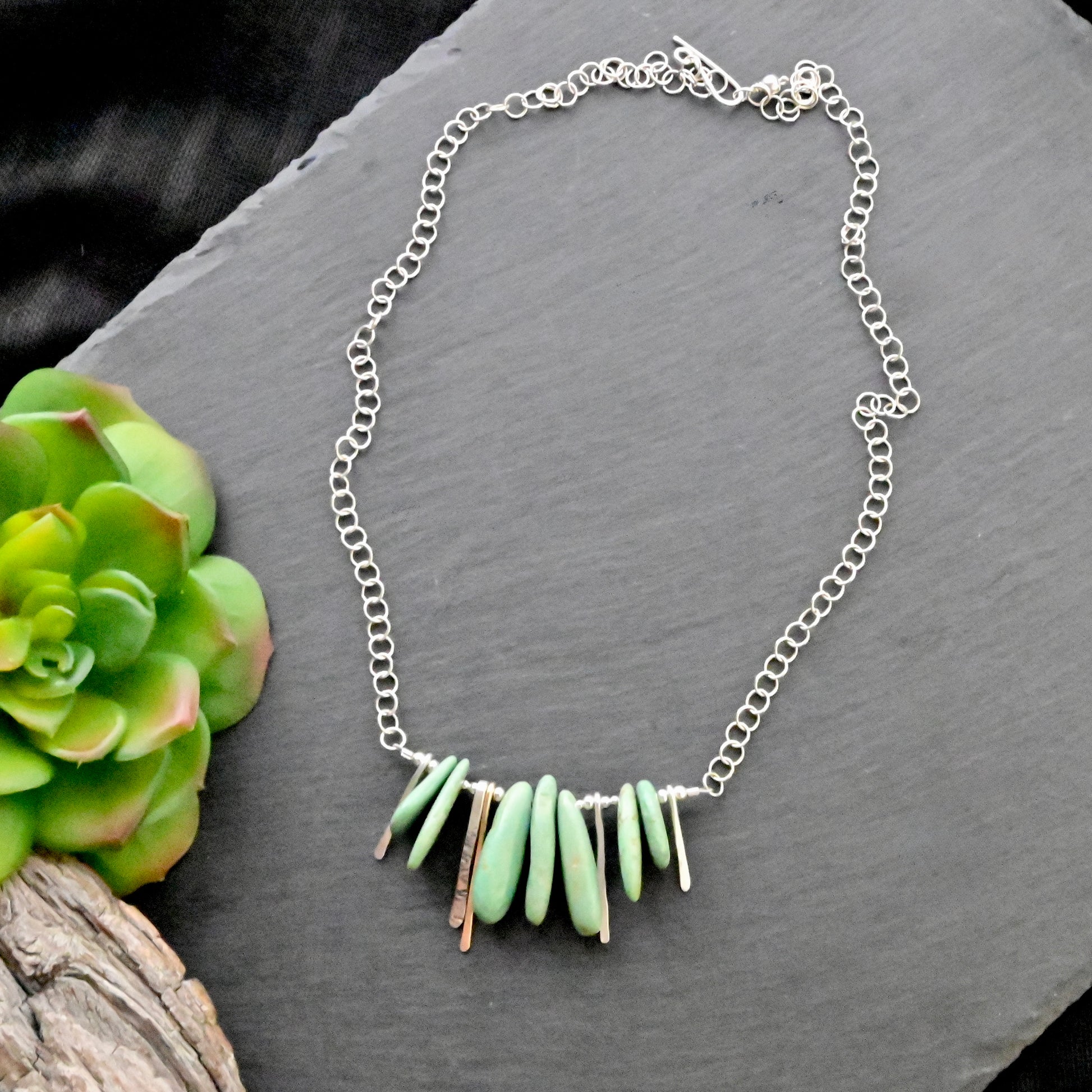 Sticks & Stones Necklace in Turquoise with Sterling Silver and Gold-fill
